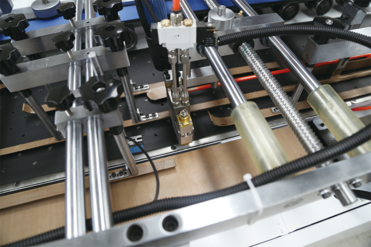 The machine uses manual feeding and automatic paper conveying, which effectively reduces workers’ labor intensity. The hot melt glue spraying machine automatically applies glue, automatically folds the edges and presses into shape. It is an ideal equipment for making handbags.